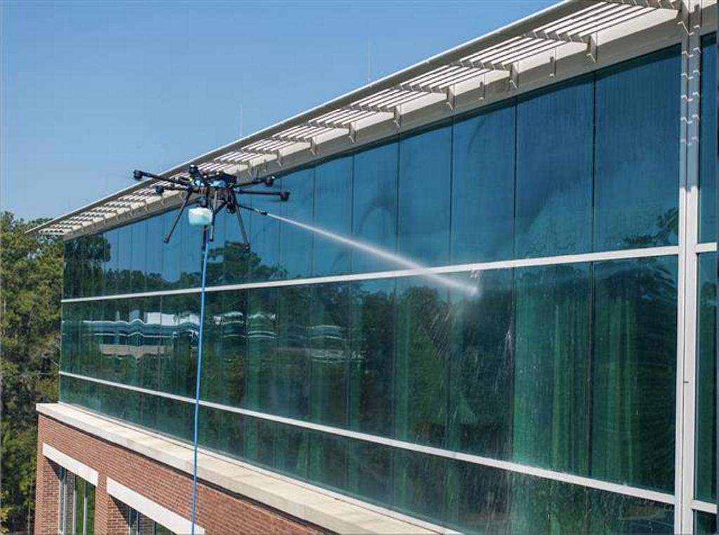 Drones have the ability to clean up to 10 floors effectively. This is advantageous when a building is not outfitted for rope work and cannot be accessed using a man lift.